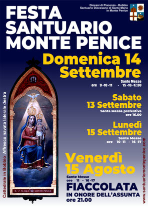 Il Penice, una delle cime più elevate dell’Appennino ligure-emiliano, raggiunge l’altezza di 1460 metri sul mare. Lo scenario che si apre al visitatore è affascinante: da un lato Bobbio, adagiata sul fondovalle, e il nastro azzurro della Trebbia, dall’atro l’arco scintillante delle Alpi; da una parte l’Appennino ligure-emiliano, dall’altra i contrafforti che scendono verso la pianura e le città che vi si stendono. Da Bobbio e da Varzi le strade salgono inizialmente tra dolci declivi disseminati di casali e piccoli nuclei; rimontano le pendici più ripide, ammantate da dense boscaglie, e giungono al Passo Penice (1149 metri). Da qui si stacca la strada che porta verso la vetta del Monte; qui vi è il Santuario dedicato al Nome di Maria. Il culto cristiano sul Monte Penice risale, verosimilmente, al secondo decennio del secolo VII.