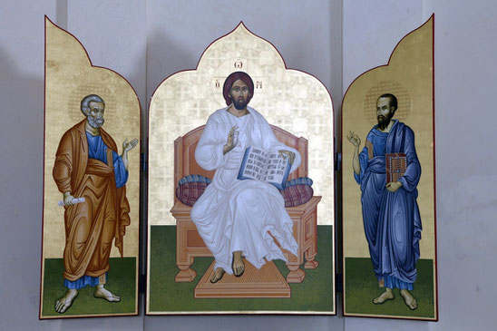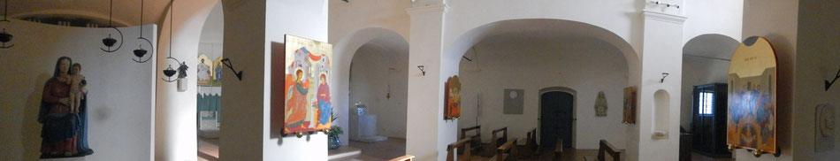 Questo tempio, ora rilucente di icone, accoglie un frammento della tradizione pittorica orientale, cui lo spettatore occidentale è riconoscente: cariche di simboli, le icone aprono alla sua anima un varco sul mondo divino.